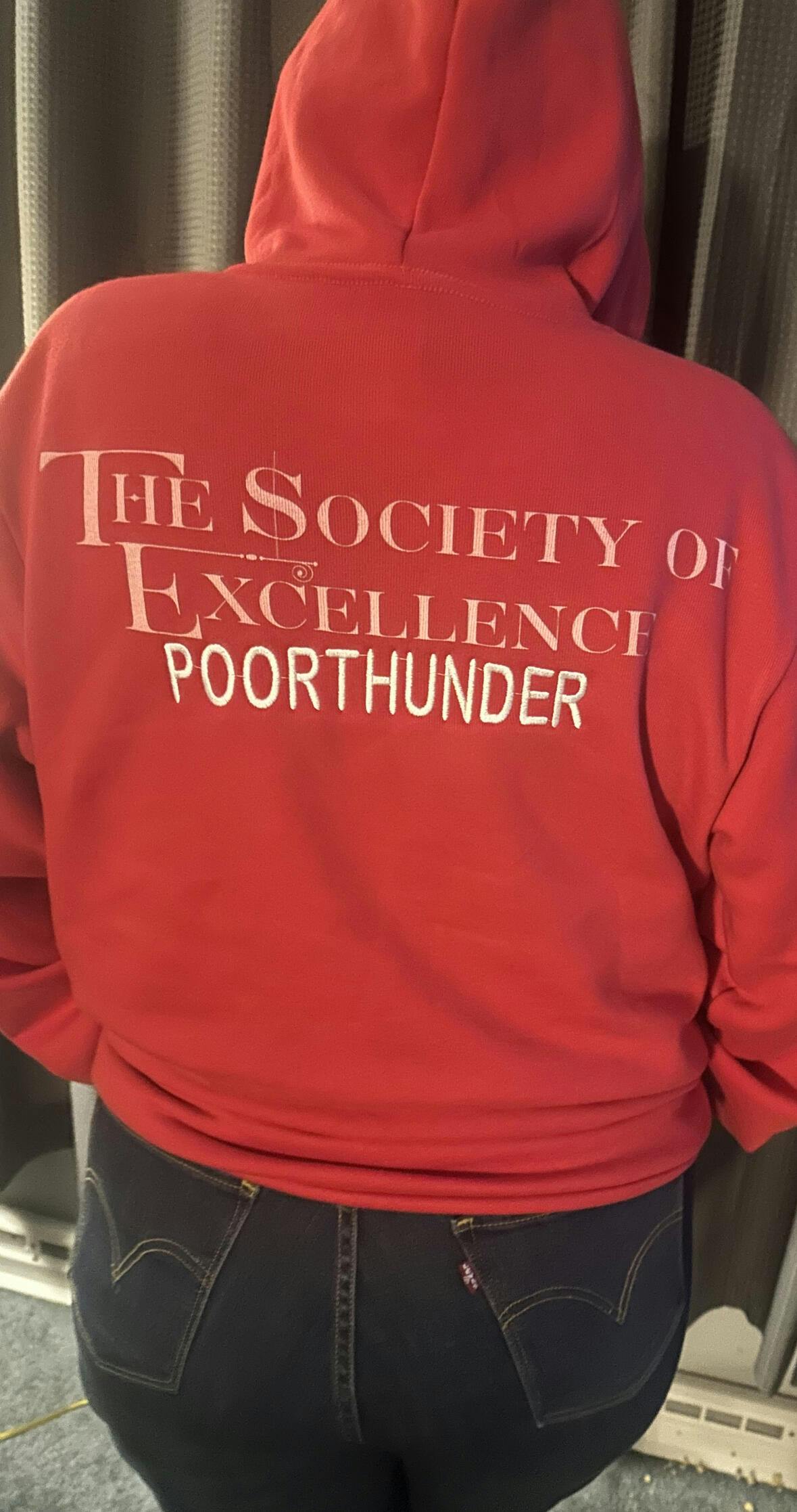 Womans "Monde" front with "Society Of excellence" Back. Perfect for Winter or Rainy day. Multiple sizes available.